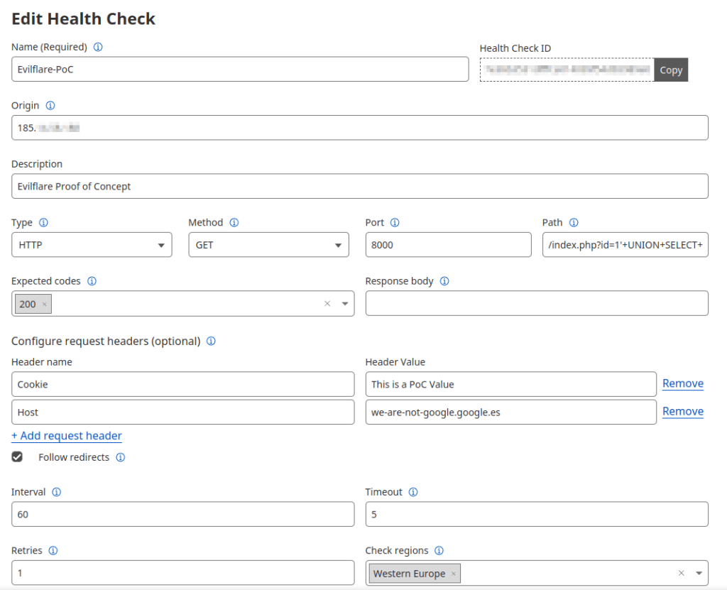 The vulnerability is located in Cloudflare’s Health Check functionality and allows an attacker, using this default feature, to generate targeted HTTP/HTTPS traffic, specifically GET and HEAD requests, towards any origin server and to any TCP port, using legit Cloudflare’s IP addresses.